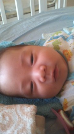 次男・もとき。神経質っぽいらしく物音にもすぐ気づいて目を覚まして、ぐずるそうな。