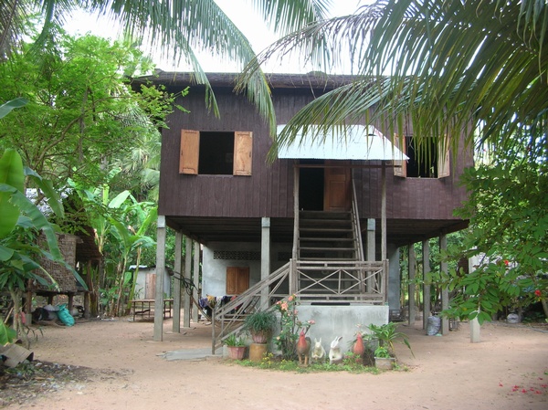 ここは木のおうちだから少々金持ちさんが住んでいるけど、あまりお金がない人は、奥に見えるみたいなわら(椰子)のおうちに住んでます。もっとお金持ちになったら、煉瓦(コンクリート)のおうちに住めるそうです。ああ、煉瓦だと風で吹き飛ばないもんね(違)。