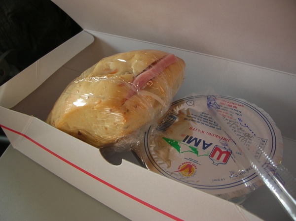 「パン+水? しかもストロー?? いや別に良いけど、オレンジジュースとか…」