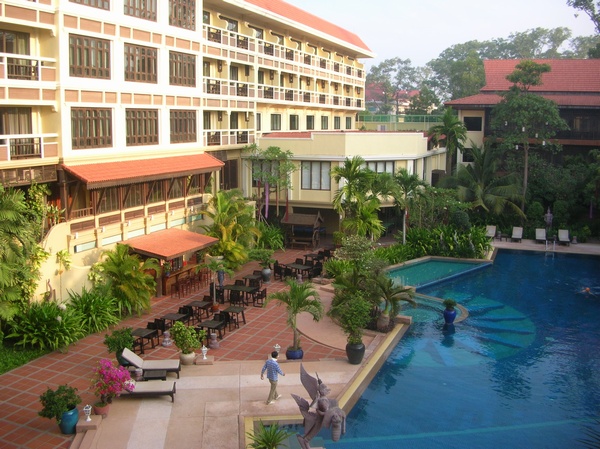 」と説明してくれたなーなどと思い出しつつ、入国審査を終えて、シェムリアップに到着です。この町は本当に、アンコールワットありきの町らしく、空港から10分くらいのところにホテルがあり、そこから10分くらいのところにアンコールワット遺跡がありました。空港からまっすぐ歩いたらホテルで、次の角を曲がったら世界遺産です。驚きの手軽さ。