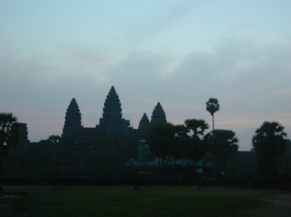 どこ?と思ってたら、結構離れてました。春分・秋分の日は遺跡の真ん中から朝日が出てくるけど、今は冬至に近いからかなり離れてるんですって。残念。でも12月はシェムリアップじゃ乾期だし、しかも1年の中では涼しい方で、昼間だって28℃くらいしか温度が上がらない、とても過ごしやすい時なんですって。太陽を取るか、涼しさを取るか悩むねホント。